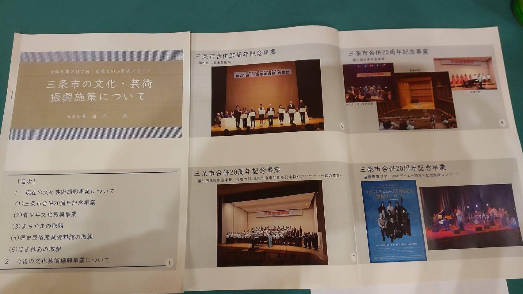 総会閉会後には、滝沢三条市長と会員とのふれあいトークを設け、「三条市の文化・芸術振興施策について」を題目として、市長からの説明を受け、池浦理事長から意見を申し上げたりと貴重な時間でした。その後の新年会には、市長もご臨席をいただき、和やかな会となりました。